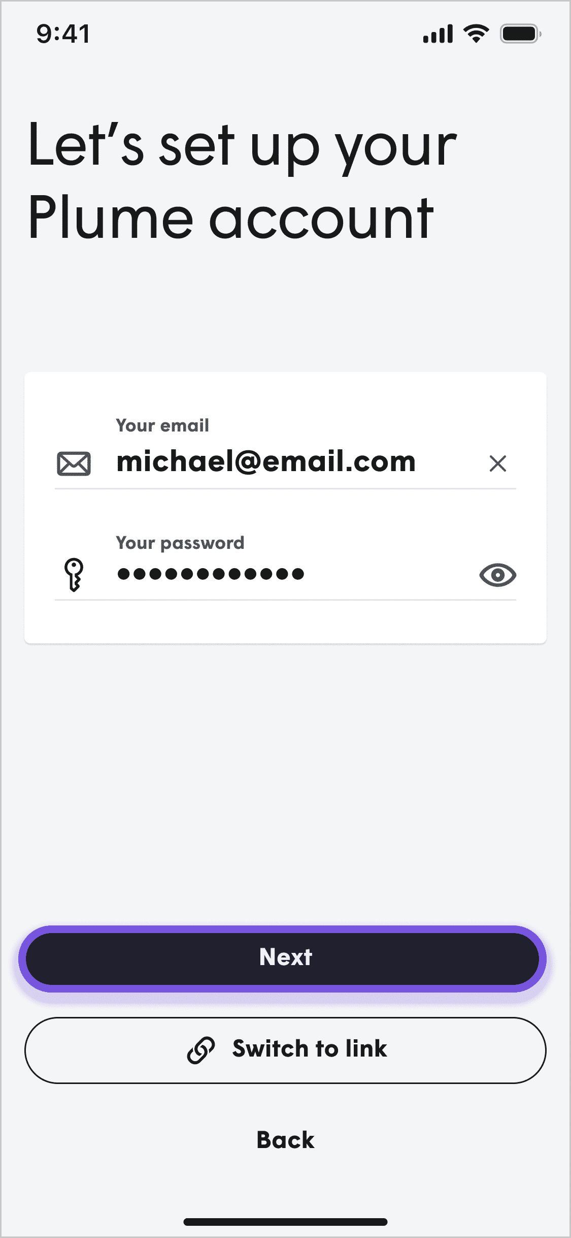 Enter your email address that you will use for verifying it is you when using the Plume Home App to administer your network.
