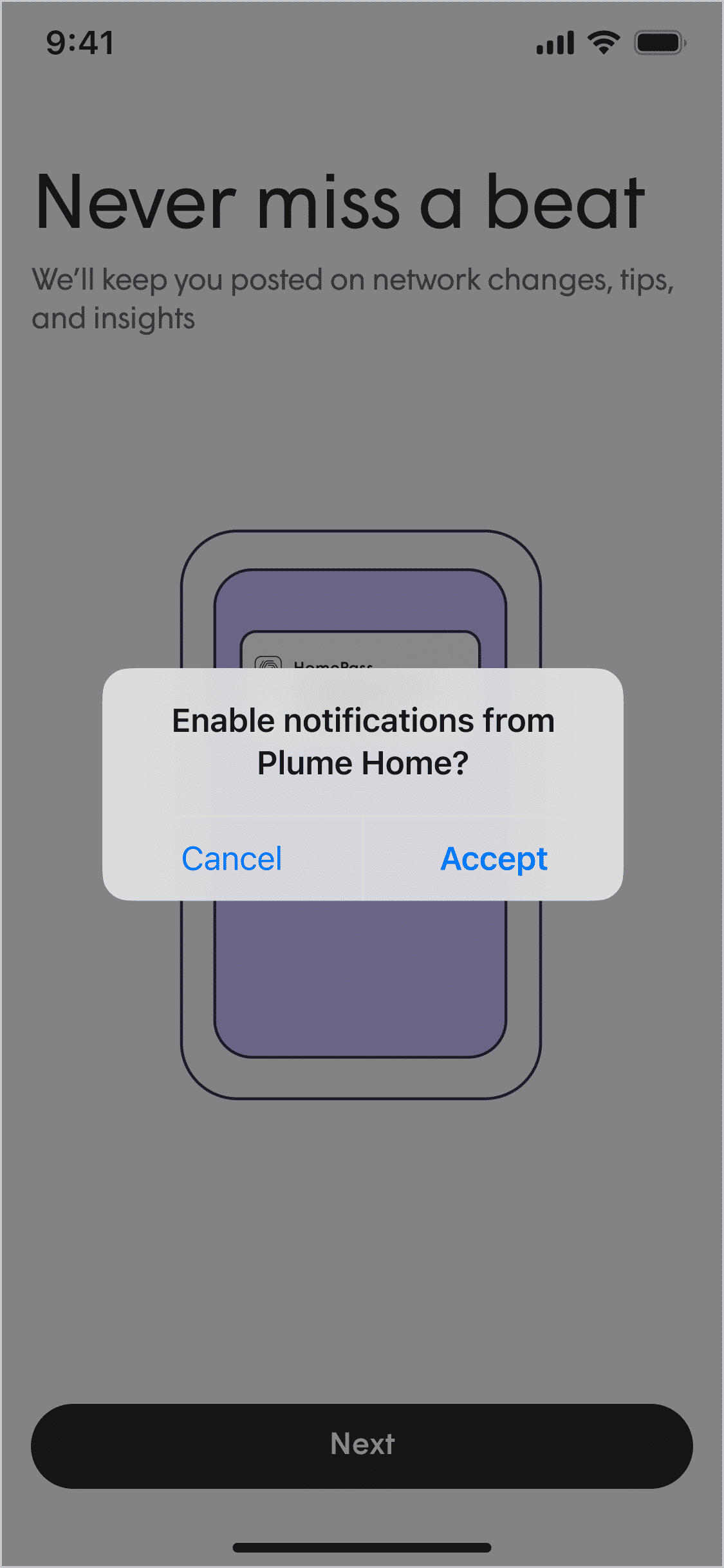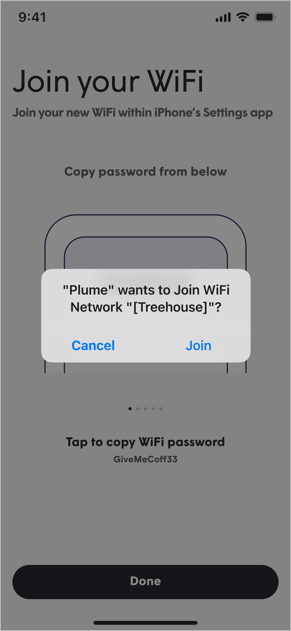 You will be prompted to join the network. Android users will be able to connect to the network in the Plume Home app. iOS users will need to access the devices connection settings to connect.